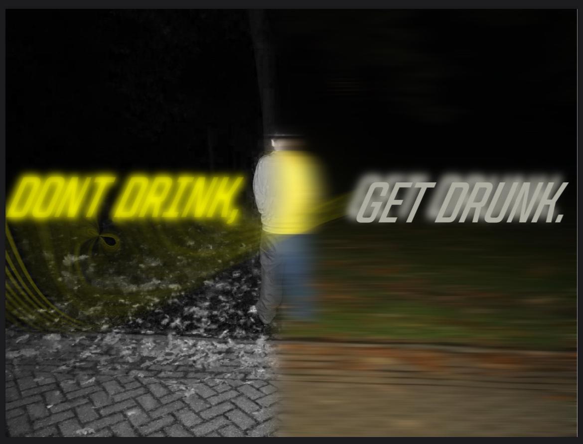 Daarna heb ik deze foto bewerkt met Photoshop en heb ik er lagen van gemaakt, en een filter en blur toegepast met tekst, dezelfde kleur van zijn trui.